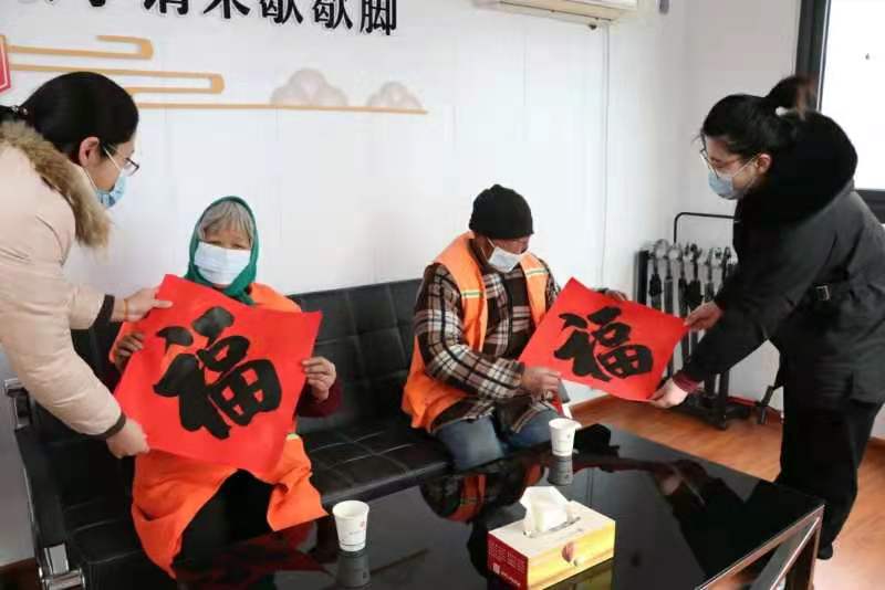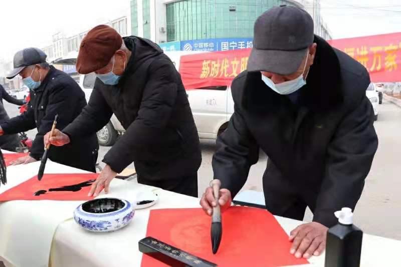 21日上午,枣园镇文化站的书画室里,书法家们手中的毛笔龙腾蛇舞。一幅幅饱含着浓浓年味、寓意吉祥的春联和“福”字跃然纸上。随后,镇文化站的志愿者们走进敬老院、交警队、派出所、环卫爱心驿站等地,看望坚守在各行各业的劳动者们,为他们送去新春的祝福和问候。
