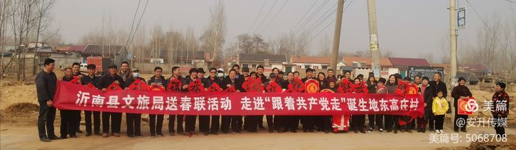 2月3日,沂南县文旅局组织县内知名书画家10余名,走进"跟着共产党走"诞生地东高庄村,开展送春联下乡活动。蒙山彩蒙景区管委会党委书记黄树田,县文旅局党组书记、局长任立军等参加活动。