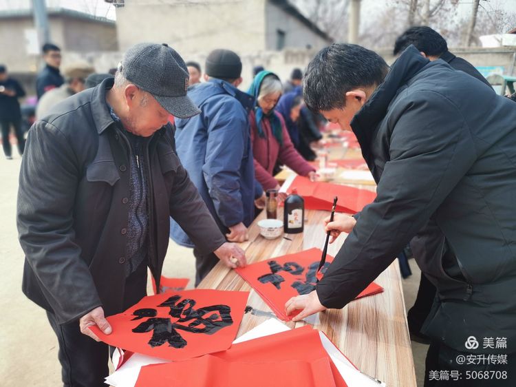 活动现场,书法家们挥毫泼墨,鸾翔凤翥,丝毫不惧初春的寒冷,笔下的春联充满了浓浓的年味。村民们个个喜上眉梢,一边欣赏书法创作艺术,一边品评春联寓意,现场处处洋溢着欢乐祥和喜庆的节日氛围。