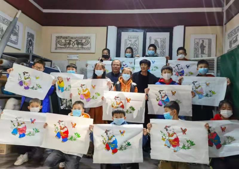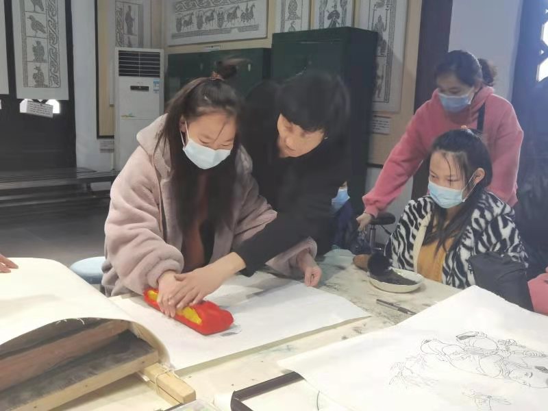 艳丽、润泽的色彩,古拙、夸张、饱满、个性化的造型方法,纯正的乡土材料和独到的工艺,一下子激发了学员们的兴趣。大家争相拿起棕刷,蘸上墨汁,覆上宣纸,跟老师学起木版年画的制作。随之,一幅幅年画印制出来,后经填色,精美的图像便呈现在大家面前,传统文化气息扑面而来,让这个中国传统节日显得年味十足。
