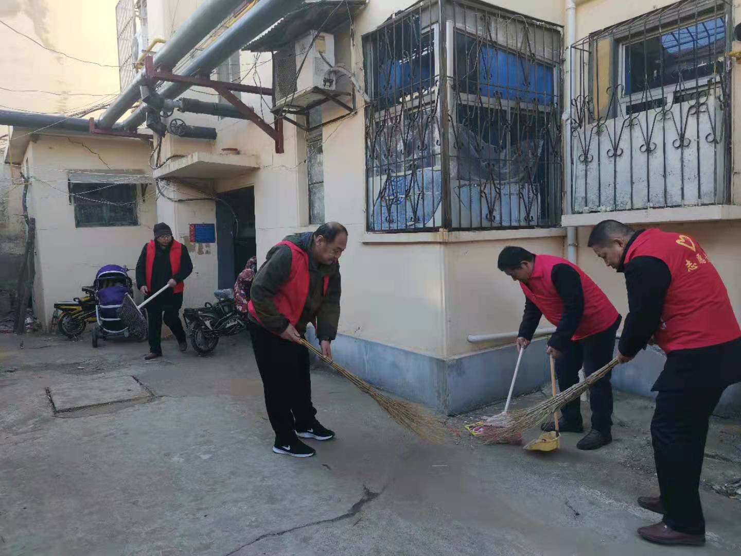 春节临近,电影中心穿着“红马甲”的志愿服务队穿梭于小区各单元楼体之间,忙里忙外更添了无限暖意。党员志愿者带头对小区内的环境卫生进行清扫,对楼道内乱堆乱放的杂物彻底清理,对小区广场及周边公共设施城市小广告全面清除,用实际行动让社区环境“靓”起来。