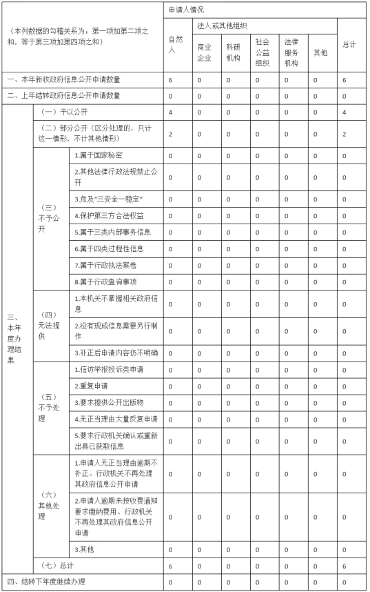 (二)聚焦规范有效,及时答复信息公开申请。依据规范、高效的原则,进一步完善信息公开申请办理程序,第一时间与申请人沟通有关情况,按照《条例》规定按时答复,最大限度地满足申请的需求,并根据重要时间节点,及时梳理发布群众关注关心的热点问题,积极推动依申请公开向主动公开转化。2022年共受理政府信息公开申请6件,办结率和答复满意率均保持100%。