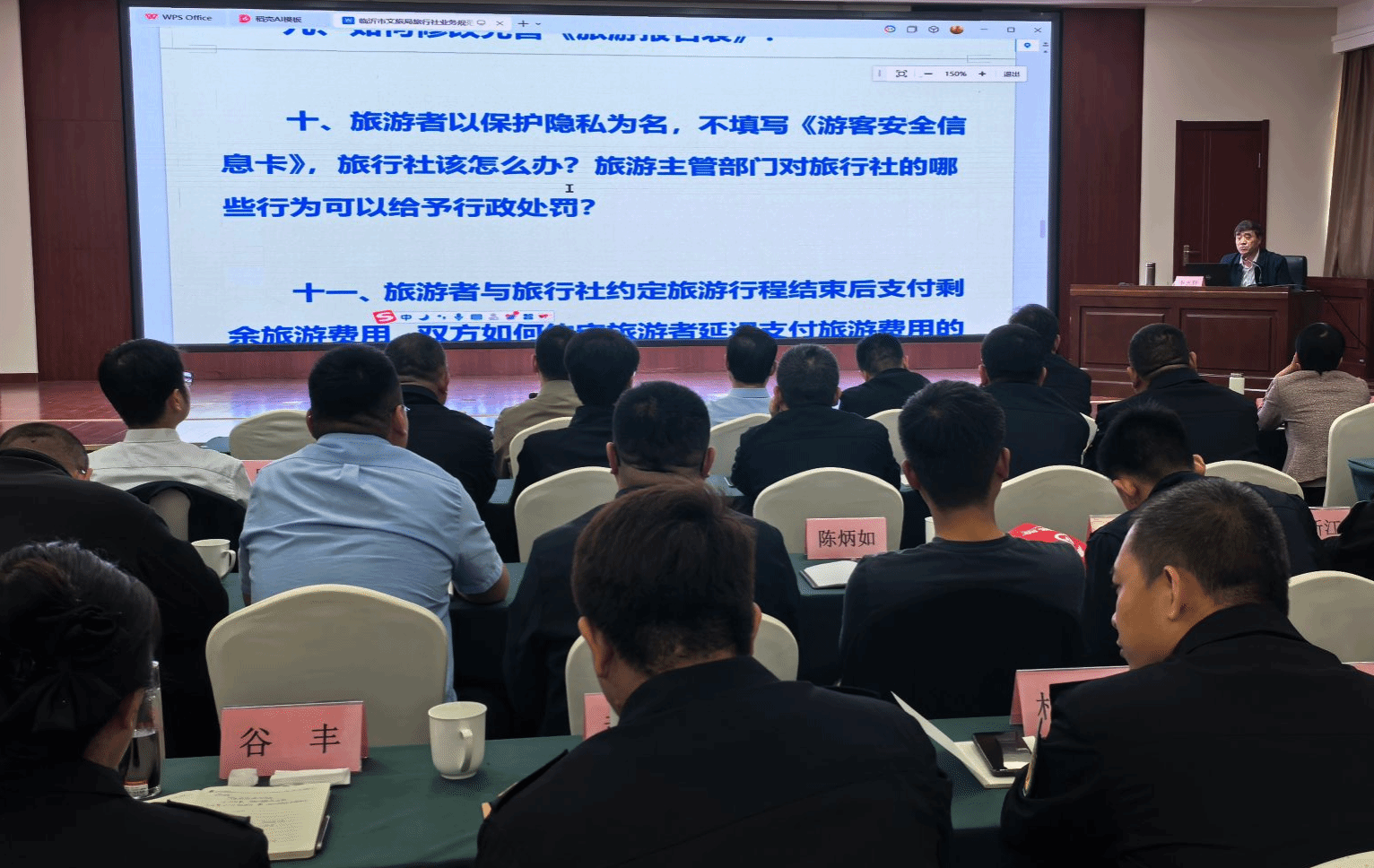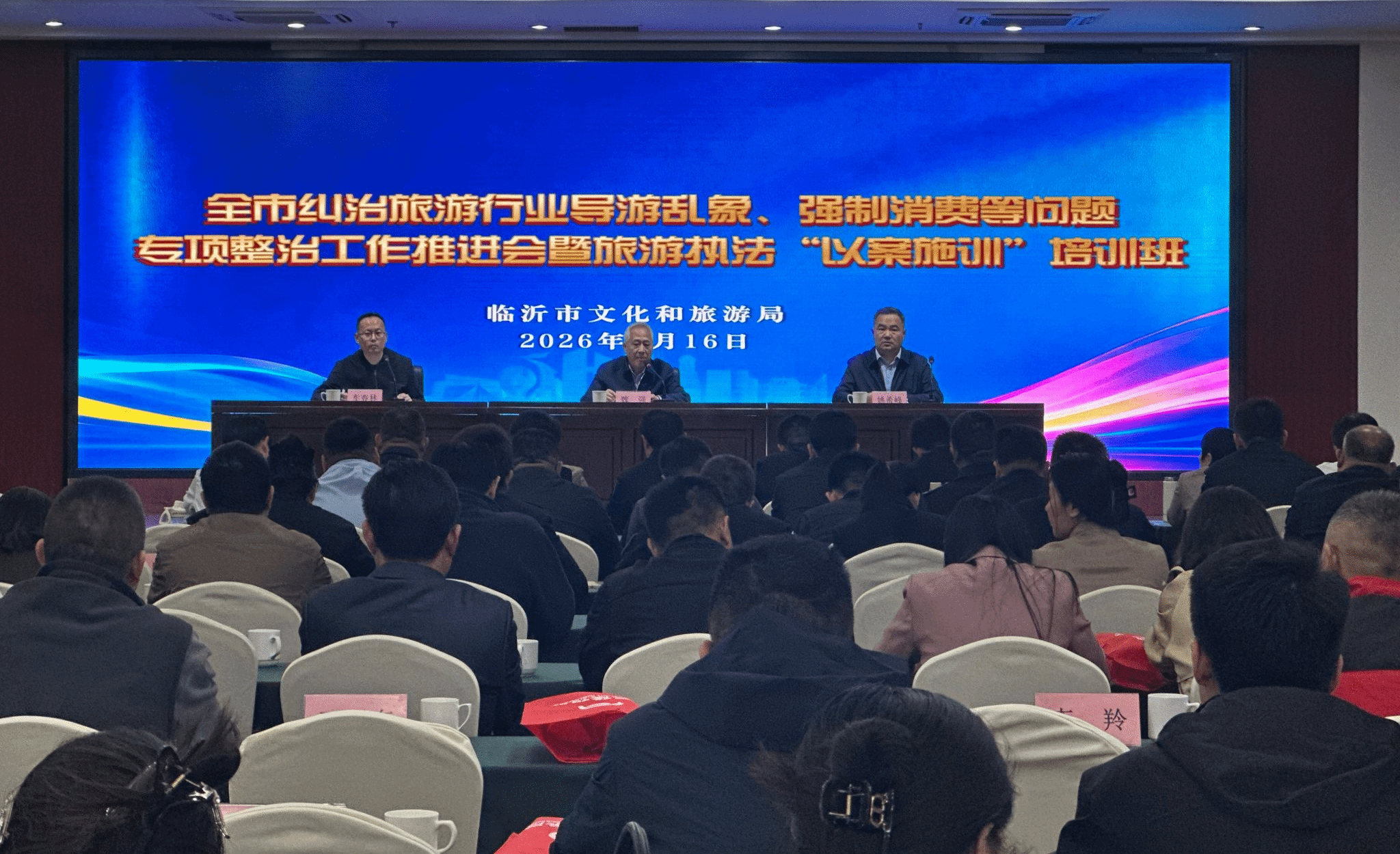 为深入贯彻落实中央、省、市关于群众身边不正之风和腐败问题集中整治工作部署,4月16日,临沂市举办纠治旅游行业导游乱象、强制消费等问题专项整治工作推进会暨旅游执法"以案施训"培训班。各县区文旅部门、执法机构负责人及旅游执法骨干、全市各旅行社负责人等200余人参加会议。