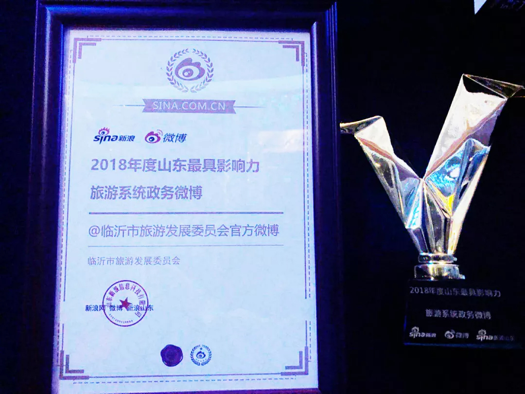 2019年1月9日,新浪山东年度盛典暨2018山东政务 V影响力峰会在济南市隆重召开。会议总结了2018年度山东政务微博取得的发展与成就,评选了最具影响力政务微博与优秀政务微博。临沂市旅游发展委员会官方微博被评选为2018年度山东最具影响力旅游系统政务微博,这是自2015年来连续第四次荣获此荣誉。