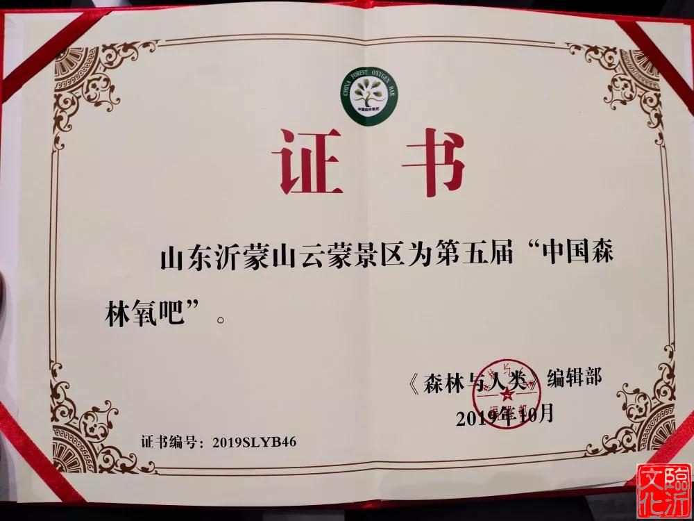 在18日下午举办的2019中国森林氧吧授牌典礼仪式上,沂蒙山云蒙景区荣获“中国森林氧吧”荣誉称号,这是继世界地质公园之后,蒙山获得的又一全国性荣誉称号。