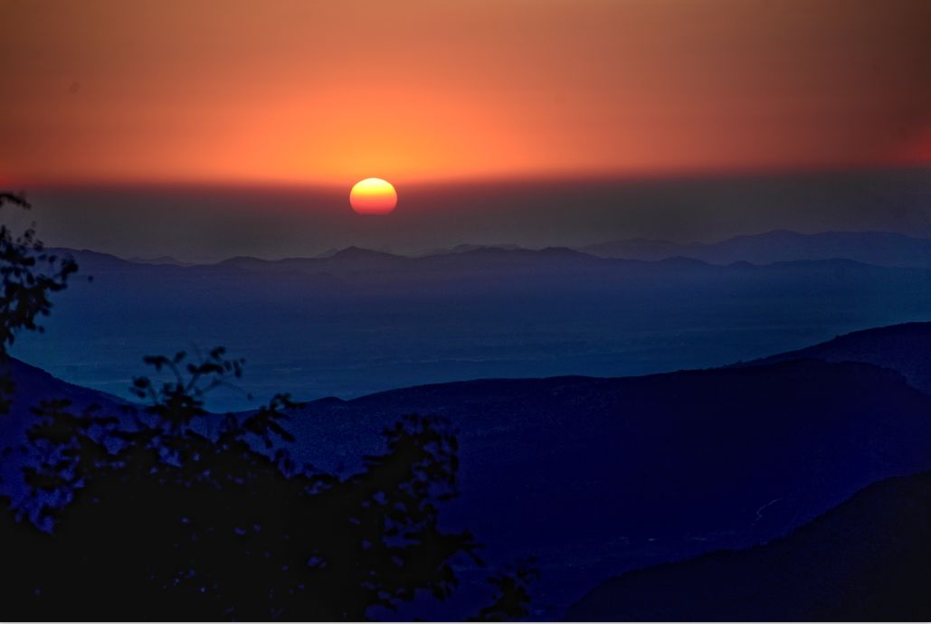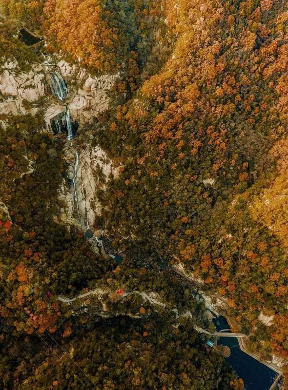 秋日阳光下笼罩着蒙山的色彩斑斓