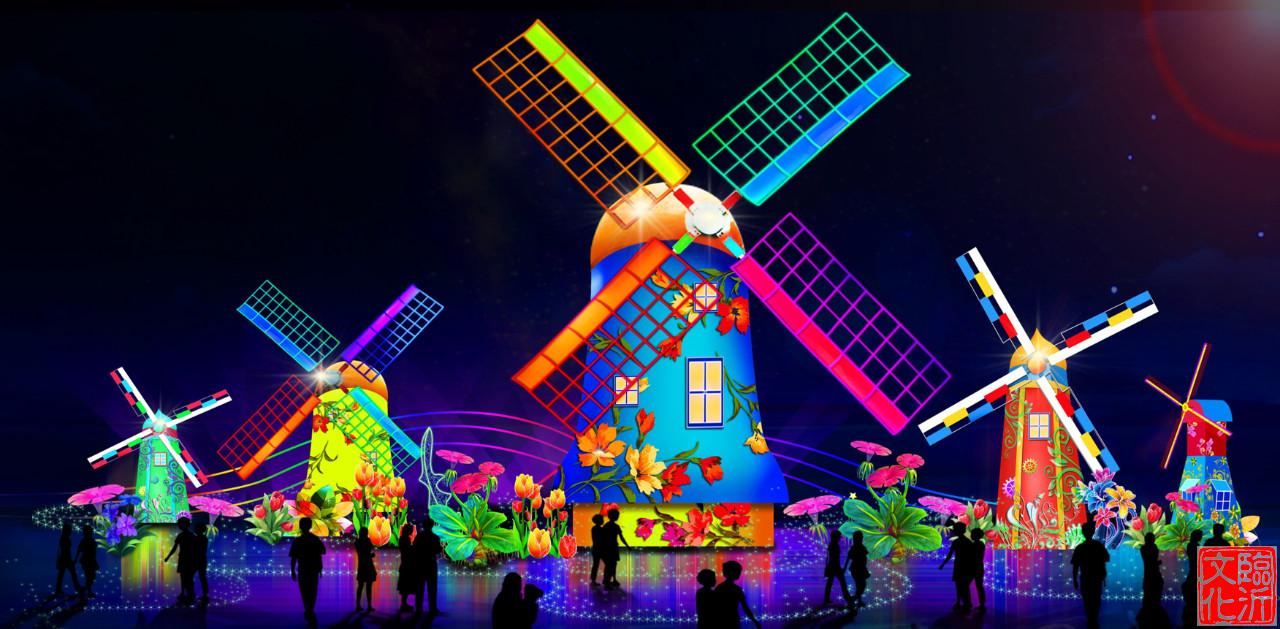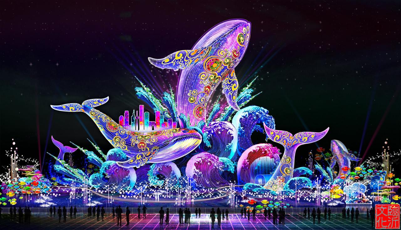临沂之夜——花灯艺术节共分为四大主题区域,分别是:梦幻海洋主题、异国风情主题、中国传统花灯及浪漫爱情主题。“炫彩海洋”:长18米,高8米,色泽斑斓的巨型鲸鱼结队在空中悠游,五彩缤纷的浪花伴其左右,形成多姿多彩的海底世界,装点着节日喜庆的气氛。 “荷兰凤车”:高3米,五彩斑斓的荷兰风,让你不出国门就能感受异国风情的魅力。“张灯结彩”:长25米、宽5米、高5米,是由中国传统灯笼与中国结构成,自古以来灯笼便是用来营造一种喜庆的氛围,而它与中国结的结合则更是体现了新年张灯结彩的理念。“爱情双子塔”:高30米,是情侣拍照打卡的好地方,和心爱的TA许下真挚的誓言,让所有人见证你们的浪漫爱情!(兰山 王守伟)