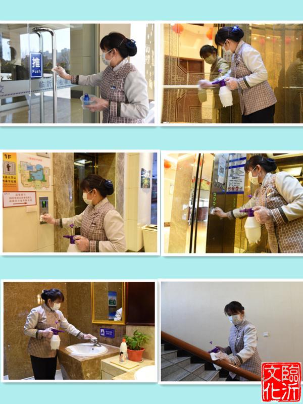 酒店公共区域增大消毒力度,对公共区域设施设备门把手、电梯按钮、楼梯扶手、洗手间水阀开关等易接触部位,使用75%医用酒精进行喷洒、擦拭消毒。公共洗手间配备消毒洗手液、一次性擦手纸。