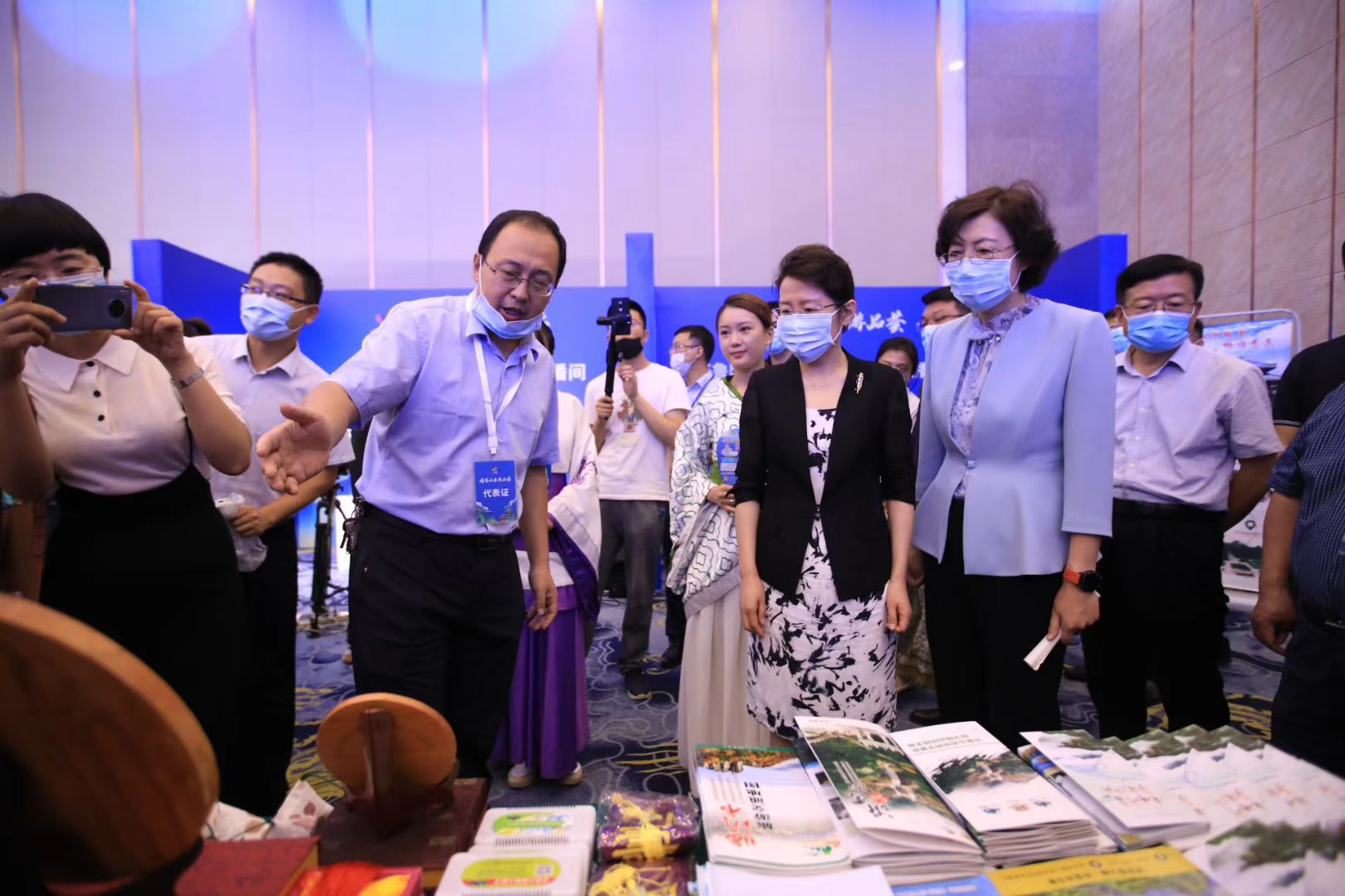 大会现场设置了16市文化旅游精品展示区,临沂市展示了具有浓郁沂蒙特色的文旅产品、文创产品、非遗产品、暑期特惠旅游产品等,受到参会领导的高度关注。省文化和旅游厅党组书记、厅长王磊,日照市委书记张惠等被临沂展示的特色产品所吸引,在临沂展台前详细了解临沂的文旅产品、暑期活动及政策情况。