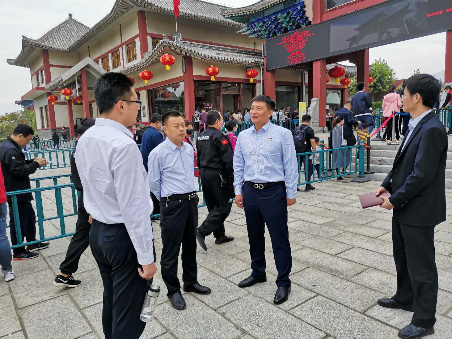 一是疫情防控、安全生产精准到位。双节前夕,平邑县召开2020年国庆、中秋节假日文化旅游安全工作会议。期间,平邑县委书记包华同志、县长陈士贤同志以及县委常委、副县长陈成才和副县长张晓华先后到重点景区、文化场所进行督导检查,要求相关部门、单位高度重视市场安全工作,严格落实疫情防控、防范化解重大风险责任制。县文旅系统4个专班,联合公安、交通、交警、市场监管、行政执法、卫健等八个部门和有关镇街在各景区加强值班巡查力度,对景区疫情防控、消防安全、食品安全、特种设备及文化和旅游市场等方面进行督导检查,保证了疫情防控、安全生产与假日文化和旅游市场有序运行。