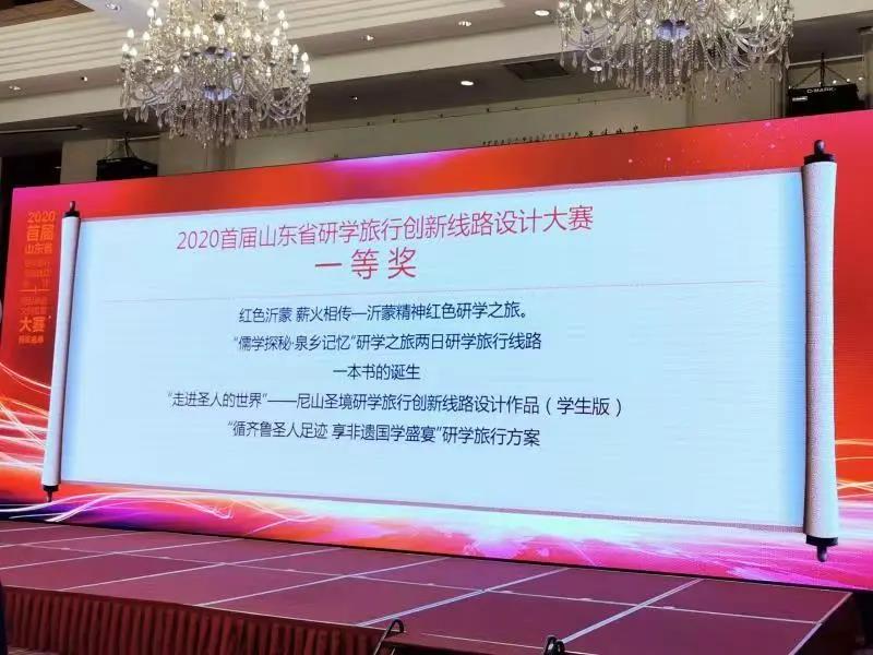 11月20日,2020首届山东省研学旅行创新线路设计大赛颁奖仪式在山东大厦举办。沂南县参评的“红色沂蒙 薪火相传”沂蒙精神红色研学之旅荣获一等奖,“智圣•启智”研学之旅荣获二等奖,“田园实践区块链 研学旅行树典范”—朱家林—物候园—竹泉村田园乡村研学旅行线路荣获三等奖。