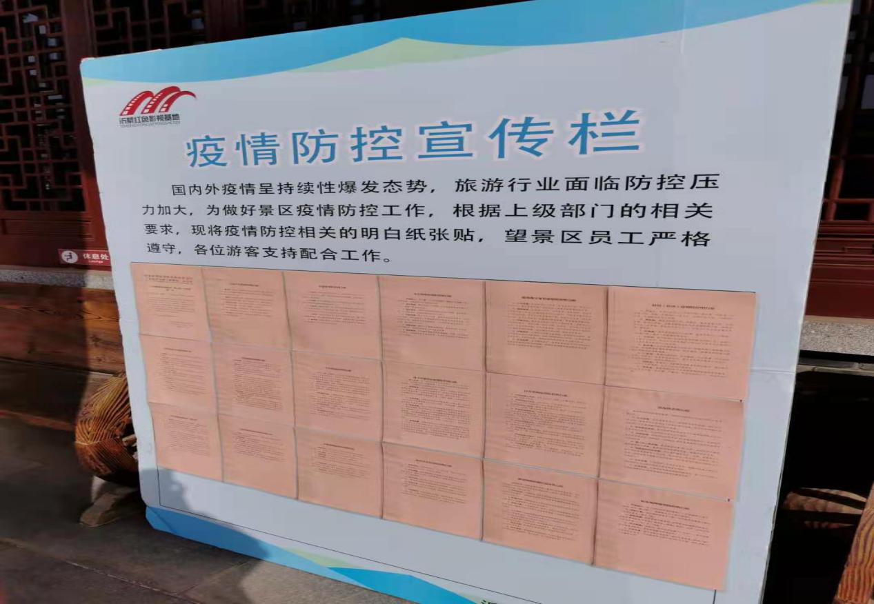 各景区根据上级部门相关要求,积极做好疫情防控工作,积极落实实名制购票、全程戴口罩、测体温、核验健康码、14天通行大数据行程卡及消毒消杀、通风换气等疫情防控措施,并在景区的重要区域设置疫情防控宣传栏、张贴明白纸,保障游客安全放心游览。