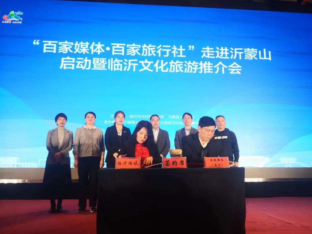会上,沂南县、平邑县、蒙阴县、兰陵县依次推介了当地的特色文化旅游产品;临沂国际旅行社有限公司和江苏金陵商务国际旅行社有限公司、临沂康辉国际旅行社有限公司和中国旅行社总社(上海)有限公司分别签署合作协议。