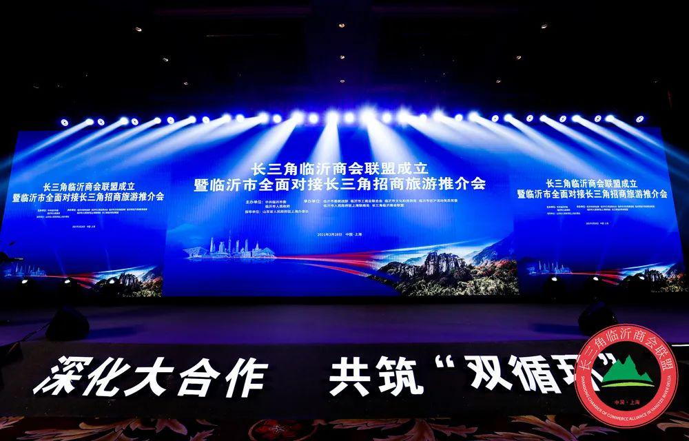3月28日下午,长三角临沂商会联盟成立大会暨临沂市全面对接长三角招商旅游推介会在沪举行。山东省驻沪办党委书记、主任孟向东,党委副书记、副主任陈金秀,长三角山东商会联盟主席、上海市山东商会会长高洪彦以及临沂市人大常委会主任杜德昌,副市长刘贤军,市政协副主席、市工商联主席王晓嫚等参加活动。临沂市政府驻上海联络处主任王相恩主持。