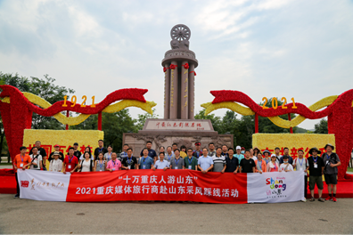 “蒙山高,沂水长,军民心向共产党”。7月11日,由重庆市文化和旅游发展委员会拓展处处长王皞、培训中心主任张奕带领的重庆媒体及旅行商一行45人来到临沂,进行了“十万重庆人游山东”2021重庆媒体及旅行商赴山东采风踩线活动。省文化和旅游厅公共服务处副处长乔宇凌,市文化和旅游局党组成员、副局长张广田及相关县区文旅部门负责人陪同。