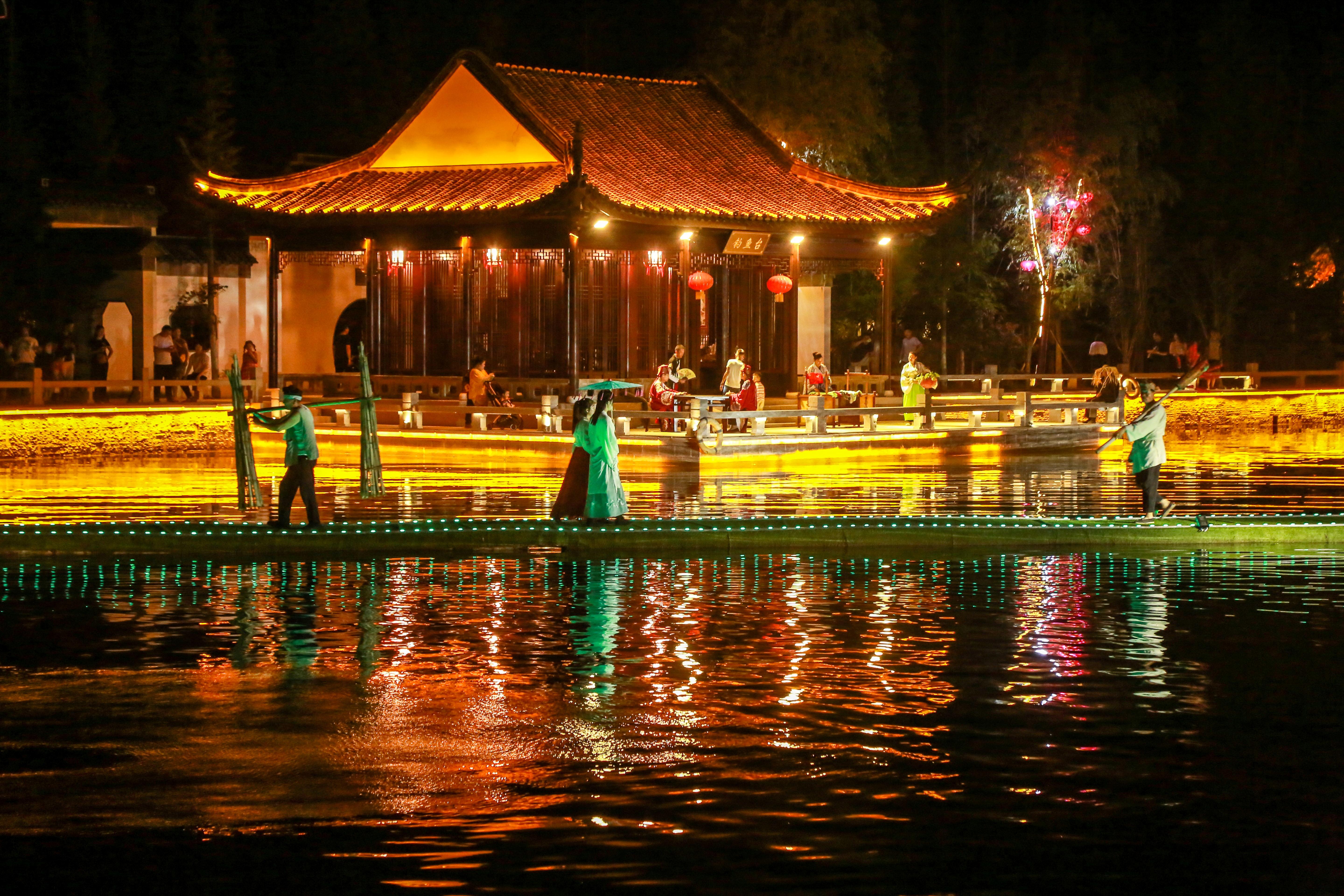 内容:《问情》水上实景演出、汉服快闪、篝火狂欢等