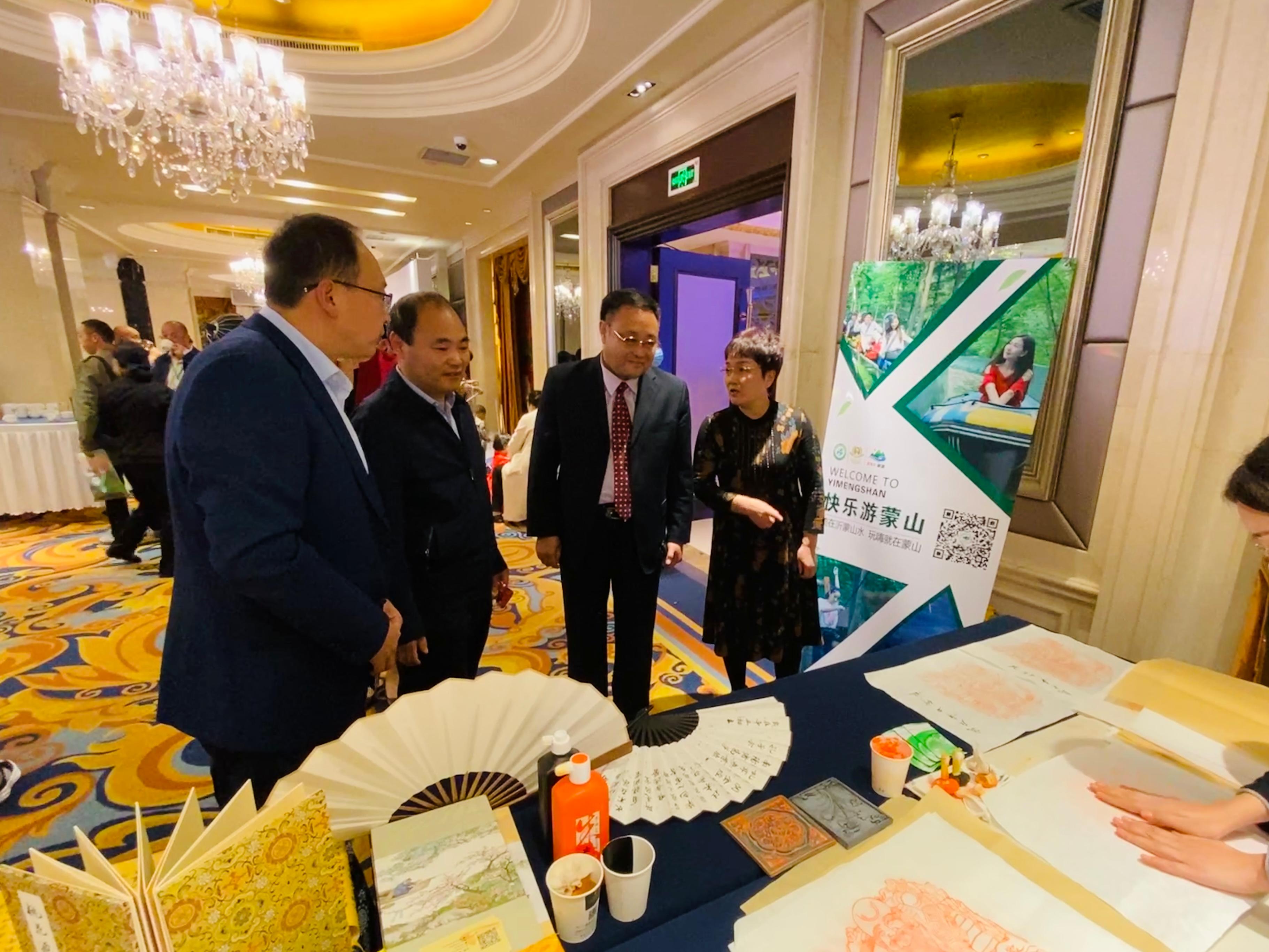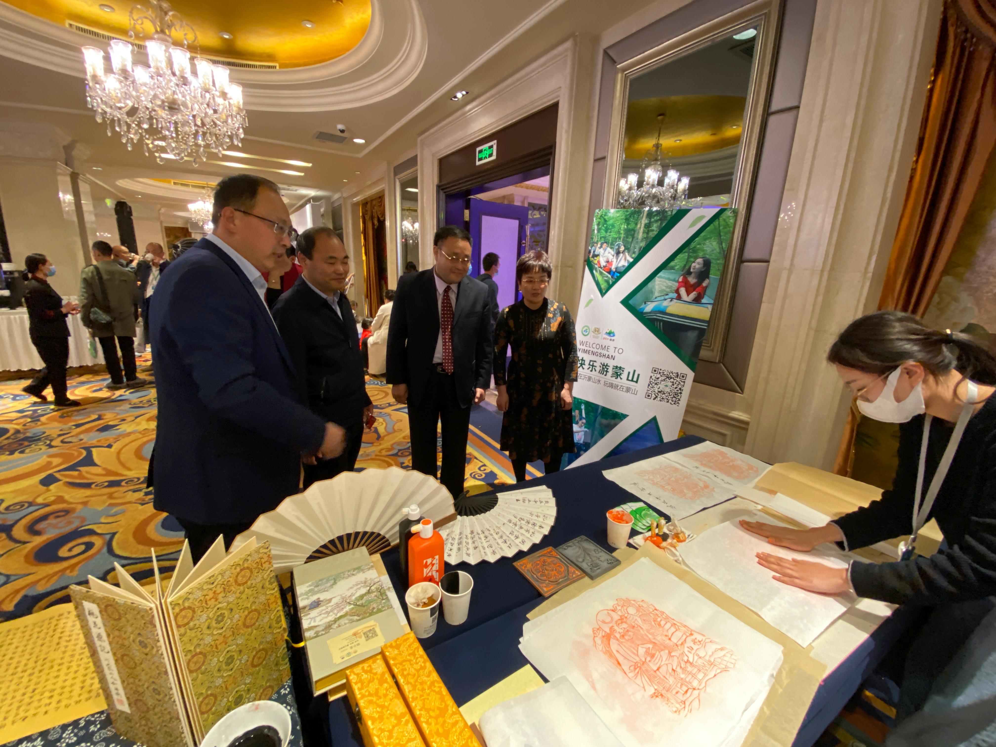 10月17日郑州永和铂爵国际酒店,一曲《沂蒙山小调》唱出了沂蒙山的风光无限;一款款文创产品和传统手工艺品吸引了现场嘉宾的目光……在由山东省文化和旅游厅主办,山东省旅游推广中心承办,山东16市文化和旅游局、同程集团协办的“好客山东·‘豫’见美好生活——2021好客山东共享美好生活(郑州)旅游推介会”上,“亲情沂蒙推介团”为河南的教育主管部门、高等院校、医疗卫生单位、航空公司、自驾游协会、知名OTA供应商、重点旅行社代表及主流媒体等近200人参会嘉宾带来了一股沂蒙热潮。