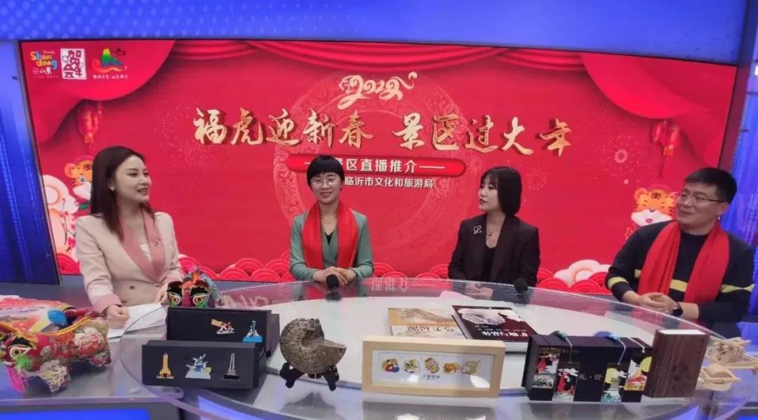 1月21日晚,由临沂市文化和旅游局主办的“福虎迎新春景区过大年”景区直播推介活动在临沂电视台全媒体直播中心举行,临沂公共直播、齐鲁晚报•齐鲁壹点、华迪文化传媒第一直播、山东交通广播微信公众号,南京幸福全家微信公众号、海报新闻客户端等6家直播推介平台同步进行。数据统计,通过2个小时的直播,发放福利300多份,共吸引近百万观众观看互动。