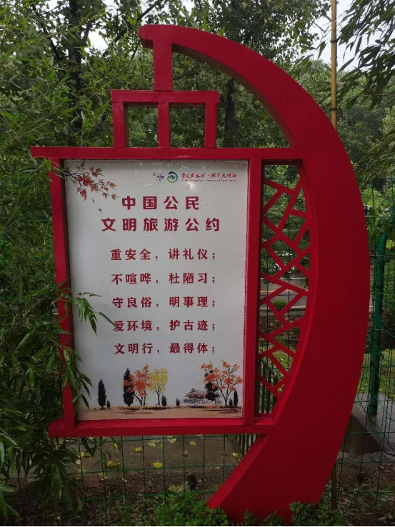景区内,地面干净整洁,更有随处可见醒目的标志,向游客宣传文明旅游,强化游客文明旅游的意识。游客把纸巾、矿泉水瓶等垃圾扔进垃圾桶中,也不少游客还自备垃圾袋,不让垃圾落地,他们是文明旅游的践行者,文明旅游已成为景区内一道靓丽的风景。