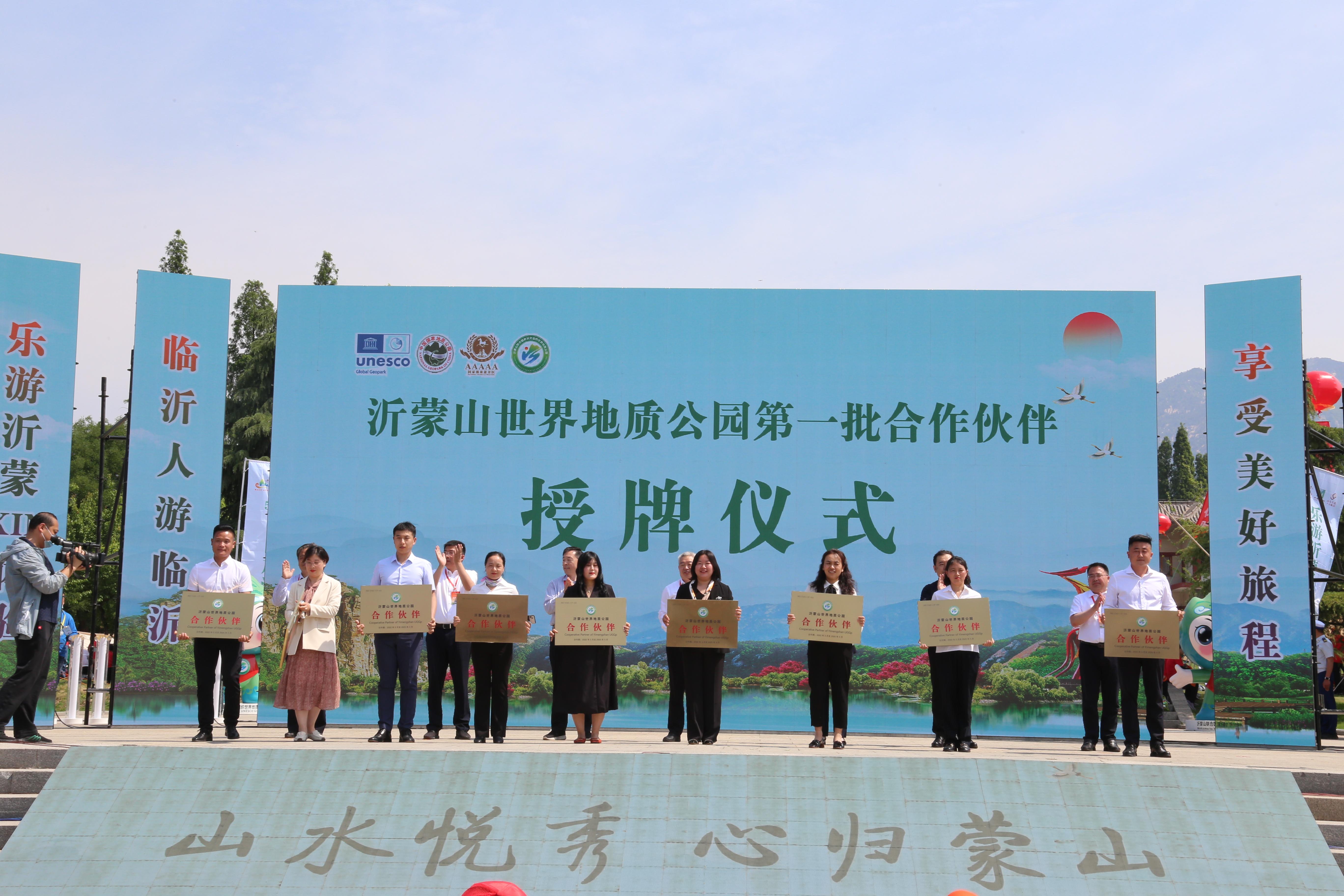 授牌仪式上,市政府副市长王映海,市委宣传部副部长王永凤,市文化和旅游局党组书记钟呈春、市文化和旅游局局长高思圣、沂蒙山世界地质公园管理局党组书记、局长主玉,平邑县委副书记、县长王玉东,市城投集团公司党委委员、农发集团董事长管佃如上台为沂蒙山世界地质公园第一批合作伙伴授牌。