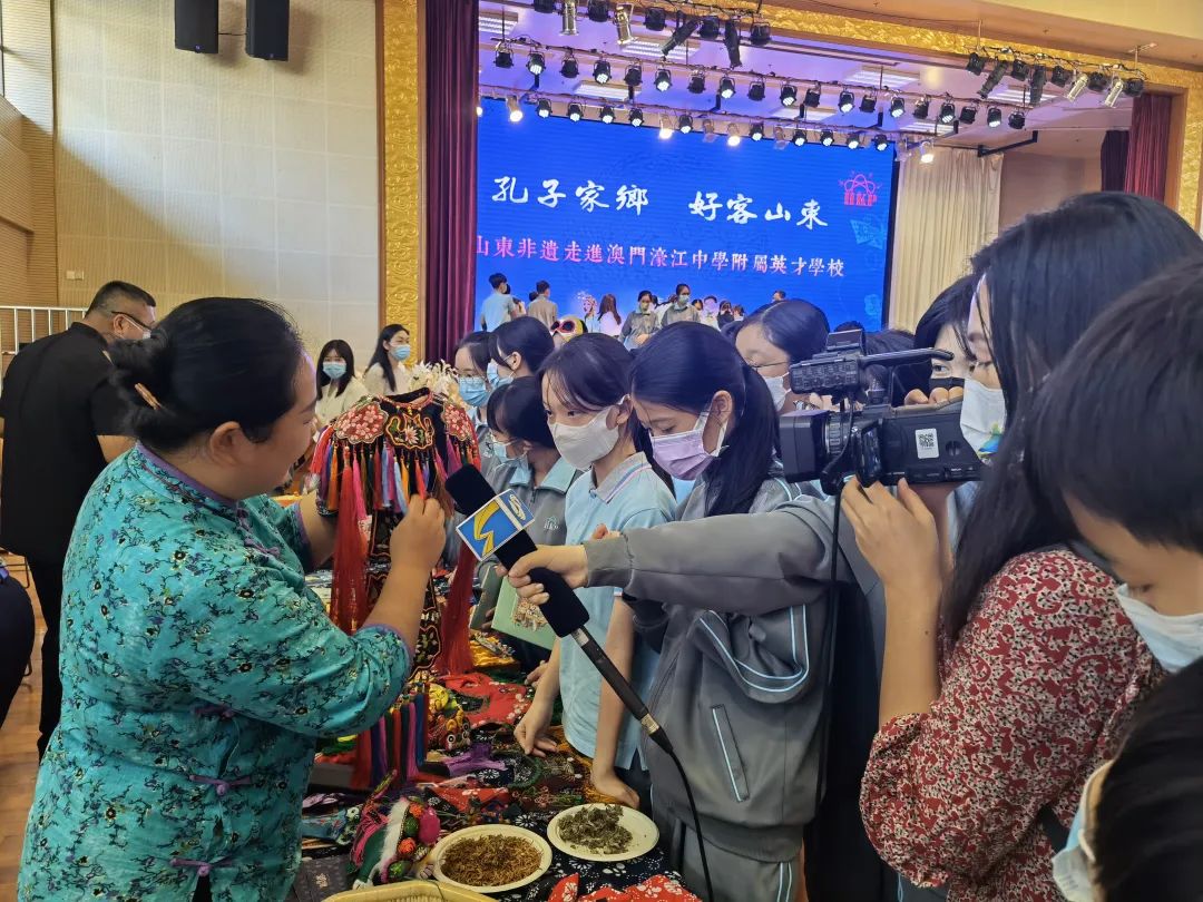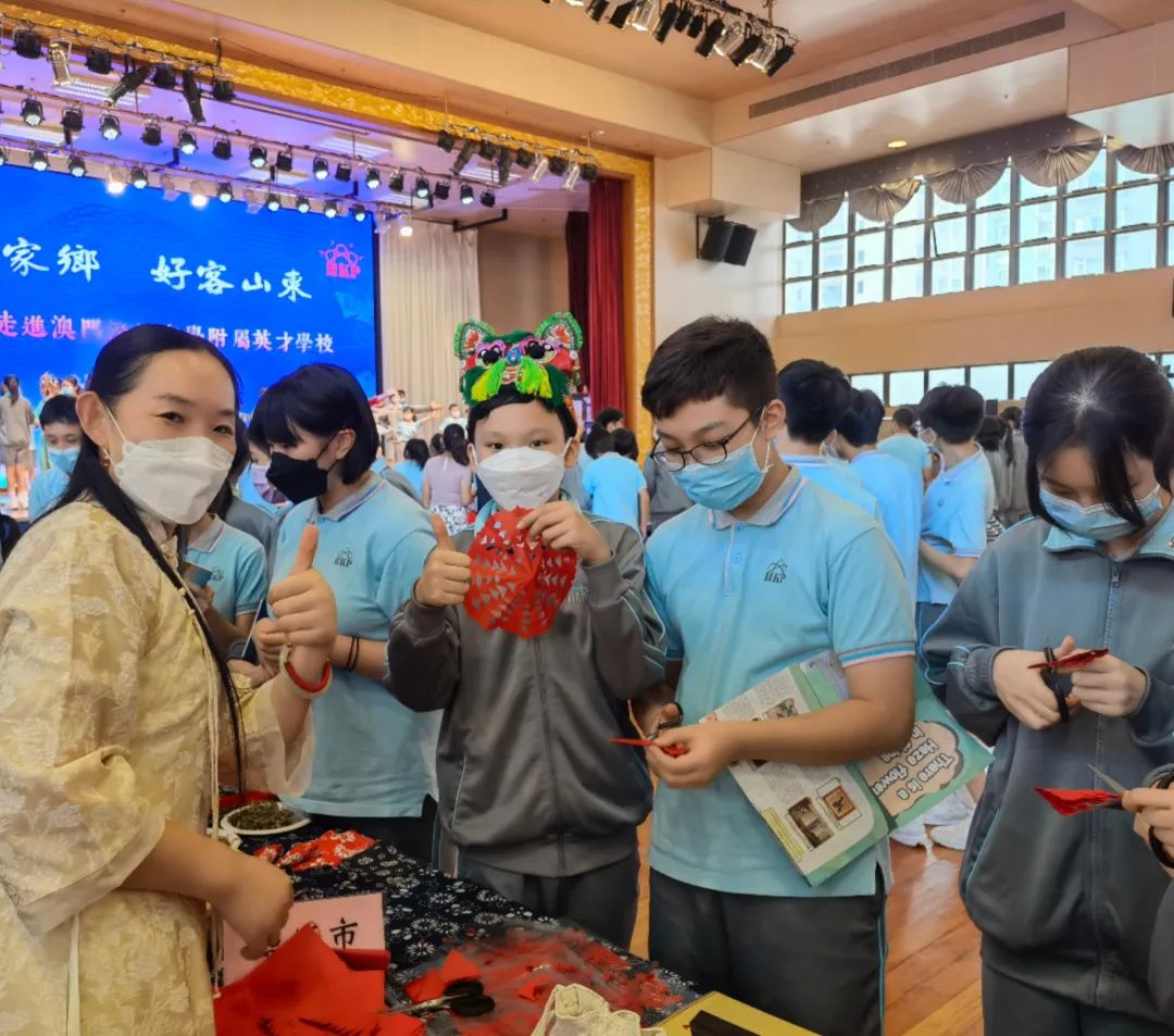 学生们戴上色彩绚丽的虎头帽拍照合影,拿起精致的荷包好奇为何会有香气;学着用剪刀剪出了美丽的窗花,又惊叹于平凡的剪纸也能融入日常生活用品中……沂蒙元素成为活动中最亮眼的色彩,受到澳门参会嘉宾及师生们的热烈欢迎。