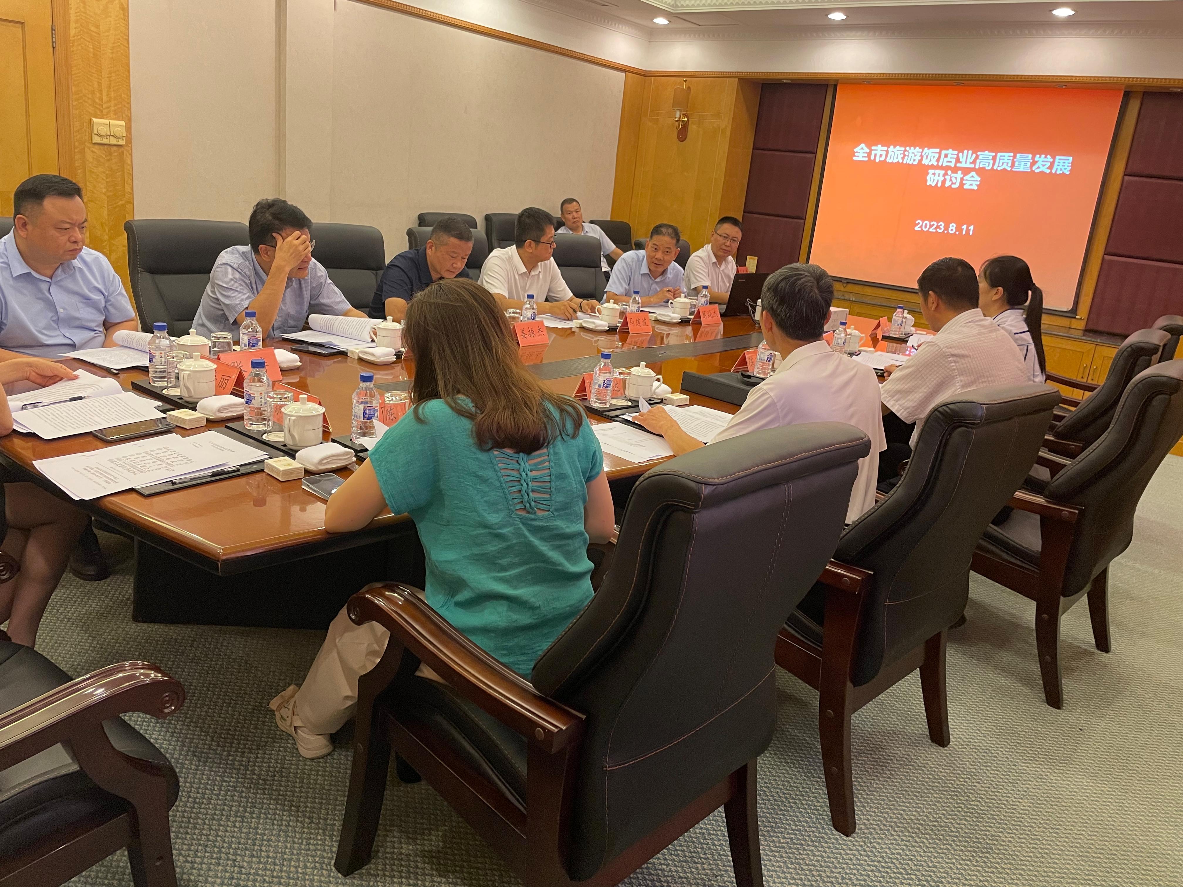 8月11日上午,全市旅游饭店业高质量发展研讨会在陶然居大酒店举行,市文旅局住宿业发展专班、市旅游行业协会饭店分会成员单位负责人等参加会议。