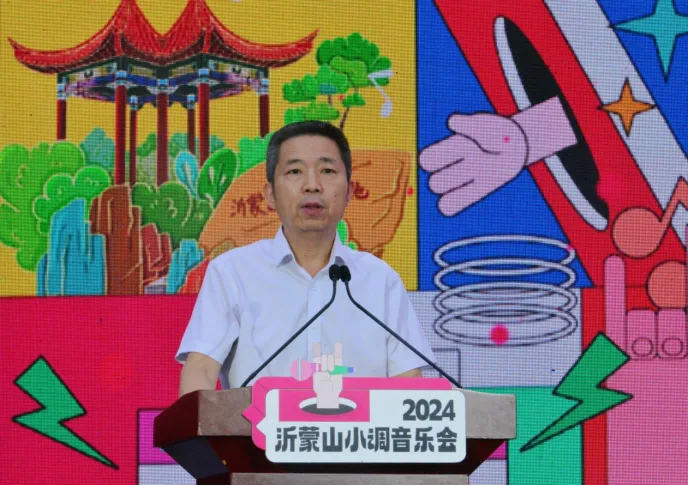 本次音乐会由山东省教育厅、山东文旅集团指导,山东广播电视台、山东农业大学、山东青年政治学院、临沂大学、山东传媒职业学院、山东医学高等专科学校、临沂职业学院、临沂科技职业学院、“红旗云”山东省思政教育服务平台、费县人民政府、山东文旅景区投资集团主办,沂蒙山银座天蒙旅游区承办,济南市市中区文化和旅游局、蒙山天蒙景区管理委员会、费县国有林场总场、费县文化和旅游局协办。音乐会以汲取精神力量,教育引导广大学生投身强国建设、民族复兴伟业为主线,坚持课内课外一体、校内校外联动、线上线下结合,通过大学生喜爱的音乐会形式,将思想政治教育与文化艺术深度融合,带领青年学子近距离感受沂蒙精神伟大力量,在新时代背景下厚植家国情怀,在感悟中国共产党人精神谱系、体悟中华人民共和国成立75周年光辉历程中传承红色基因、赓续红色血脉,努力成长为担当民族复兴重任的时代新人。启动仪式18点30分举行,正值傍晚,天蒙景区尚笼罩在落日余晖之下,主峰天蒙顶以及望海楼、世界第一悬索桥、红色山口列车被镀上了一层金光。喧嚣了一天的景区回归沉寂,晚风清爽宜人,此时大家身处《沂蒙山小调》诞生地,心中都有歌唱的冲动。当晚活动共分沂蒙山小调音乐会、天蒙山夜游启动仪式以及夜游体验活动三块内容。山东文旅景区投资集团党委书记、董事长朱爱军在启动仪式上讲话,他说——“本次与各大高校联手重磅打造的“沂蒙山小调音乐会”,是一场经典与新潮的对话、是一次传统与现代的融合,是贯彻“传承红色基因、学思践悟中国共产党人精神谱系”宣传教育的生动实践,对于在新时代传承红色基因、赓续红色血脉、弘扬沂蒙精神与革命文化具有更加现实的意义,让《沂蒙山小调》这一红色经典具有更加鲜活的感染力,更好地将沂蒙精神、沂蒙历史传唱下去。”