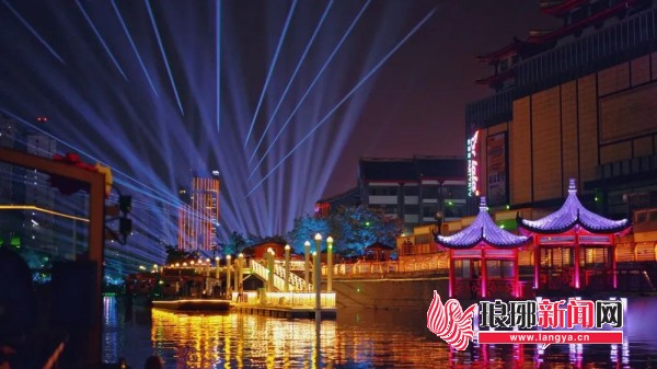 每当夜幕降临,涑河水岸流光溢彩。音乐响起,游船起航,两岸灯光秀璀璨上演,伴随着水上卷轴徐徐展开,一场梦幻神话之旅正式开启。“夜画琅琊”行进式游船水上演出场场爆满,一票难求,成功接待河北、河南、安徽等省内外游客,成为临沂旅游新热点。