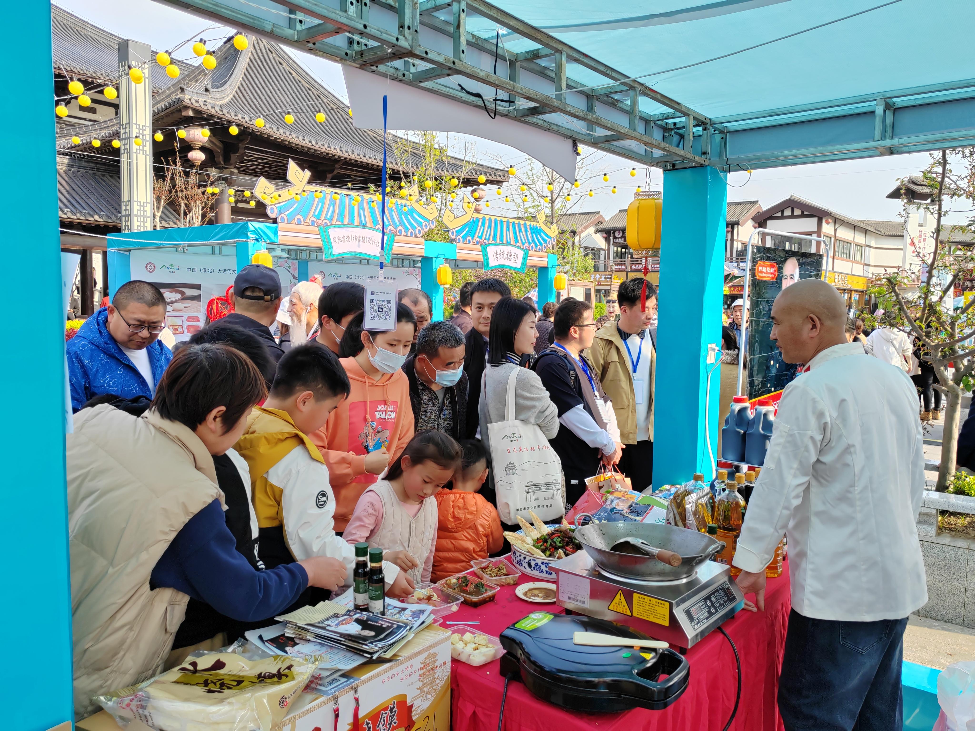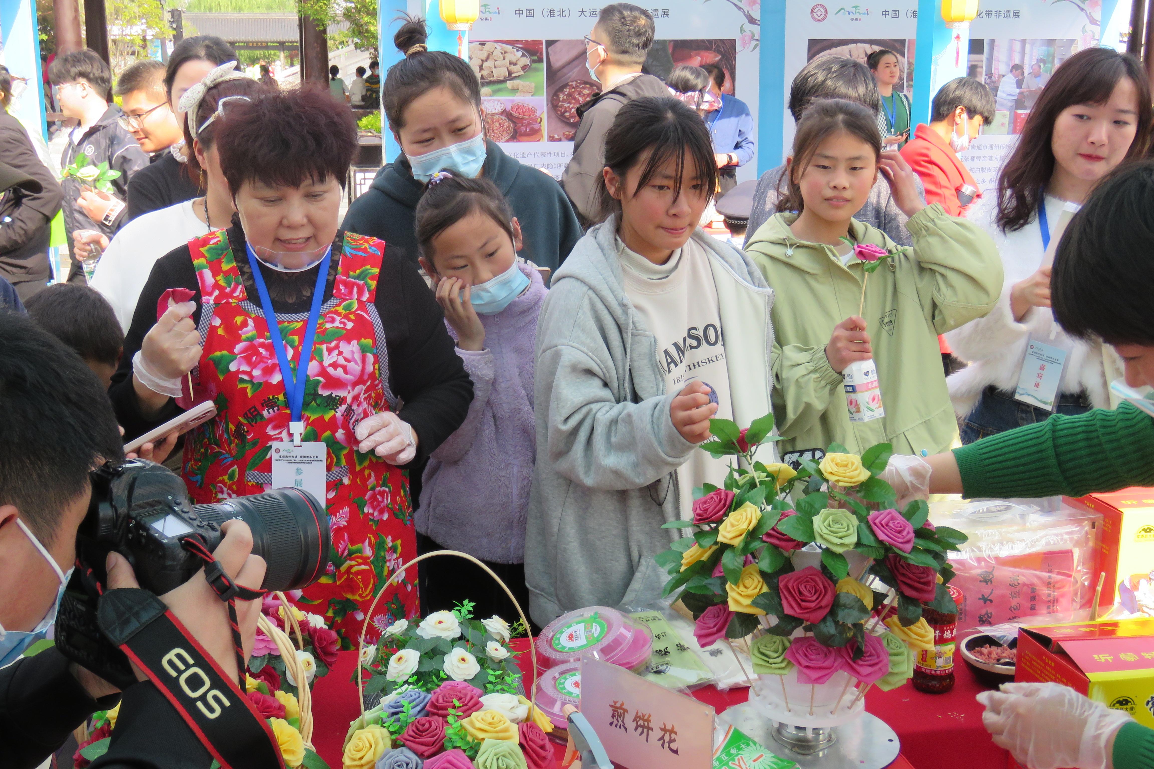 2023年4月8日至9日,由安徽省文化和旅游厅、淮北市人民政府共同主办的“运河寻梦”2023年中国(淮北)大运河文化带非遗展暨非遗进景区系列活动,在淮北市隋唐运河古镇举行。我市小二回锅炒鸡、蒙阴煎饼花代表山东省参加活动,能赏能吃的非遗美食,引得当地群众和游客纷纷驻足,近距离观看、品尝、购买来自山东的特色风味美食。