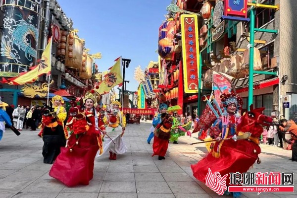 舞龙、舞狮、划旱船、踩高跷、敲腰鼓……这是临沂“灯火兰山·新琅琊”不夜街区为欢庆“二月二”而举行的多彩民俗活动,引得不少游客参与其中,并再次火爆出圈。
