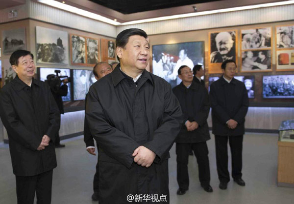 2013年11月25日,习近平来到位于山东省临沂市的华东革命烈士陵园,向革命烈士纪念塔敬献花篮,并参观沂蒙精神展。在“山东人民抗日武装起义示意图”“沂蒙人民支前统计表”等展示前,他详细询问沂蒙地区革命战争历史。他表示,历史不能忘记,回想当年峥嵘岁月,我们很受教育。
